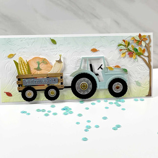 I cannot believe September is almost over. Time flies when you're having fun! With my subscription to Spellbinders Club Kits, I've created this cute tractor-trailer card with the Spellbinders Large Die of the Month Membership